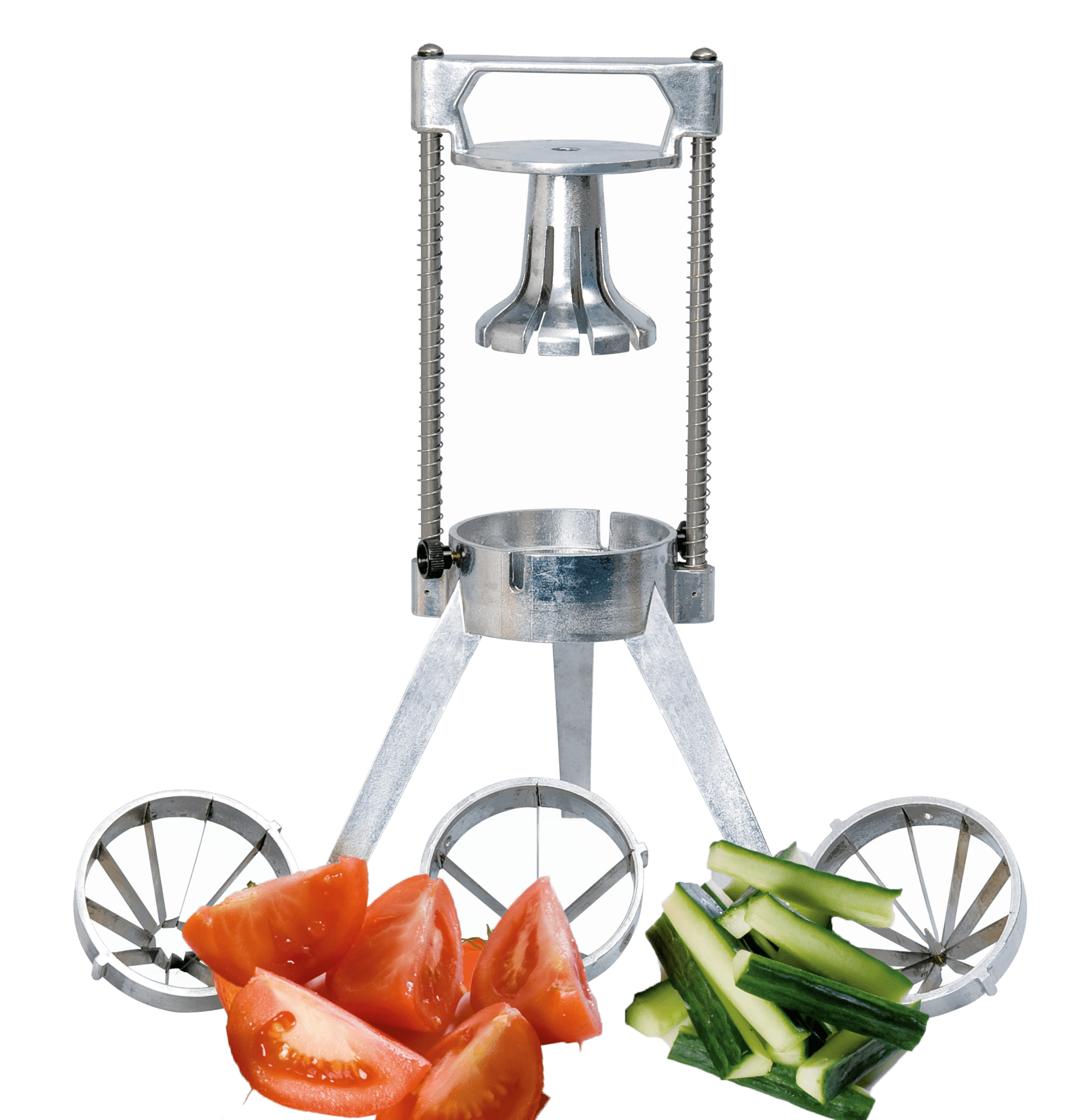 Gemüse und Früchte werden zu dekorativen Highlights: aus Kartoffeln entstehen perfekte Country Fries, aus Peperoni und Pilzen ideale Grillspiessstücke. Aus Äpfel und Birnen werden gleichmässige Schnitze für Kuchen und aus Orangen, Zitronen und Limonen die gewünschten Grösse für Cocktails.