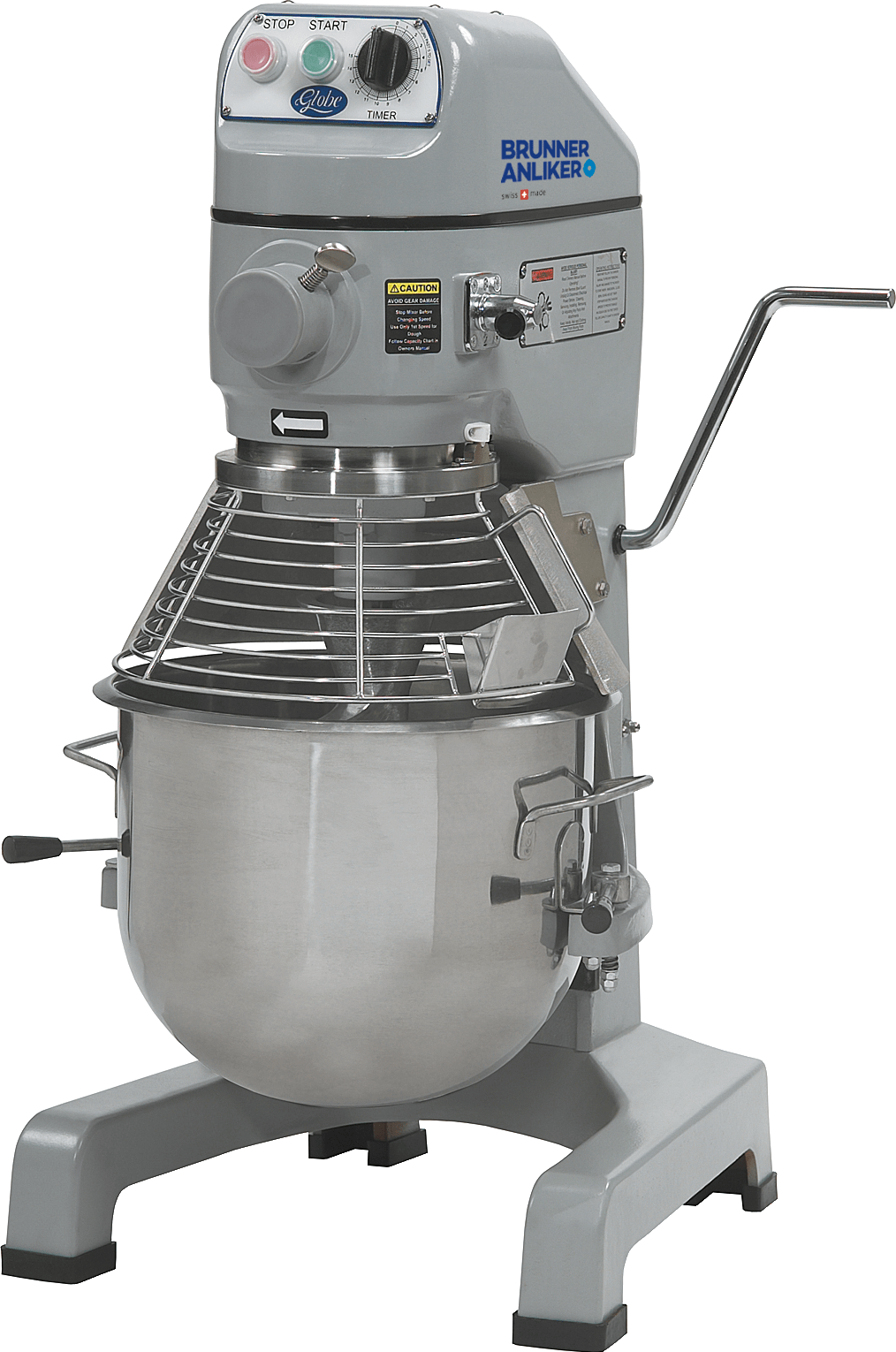 Robustes Planetenrührwerk mit 30 Liter Edelstahlkessel und 3 Werkzeugen.